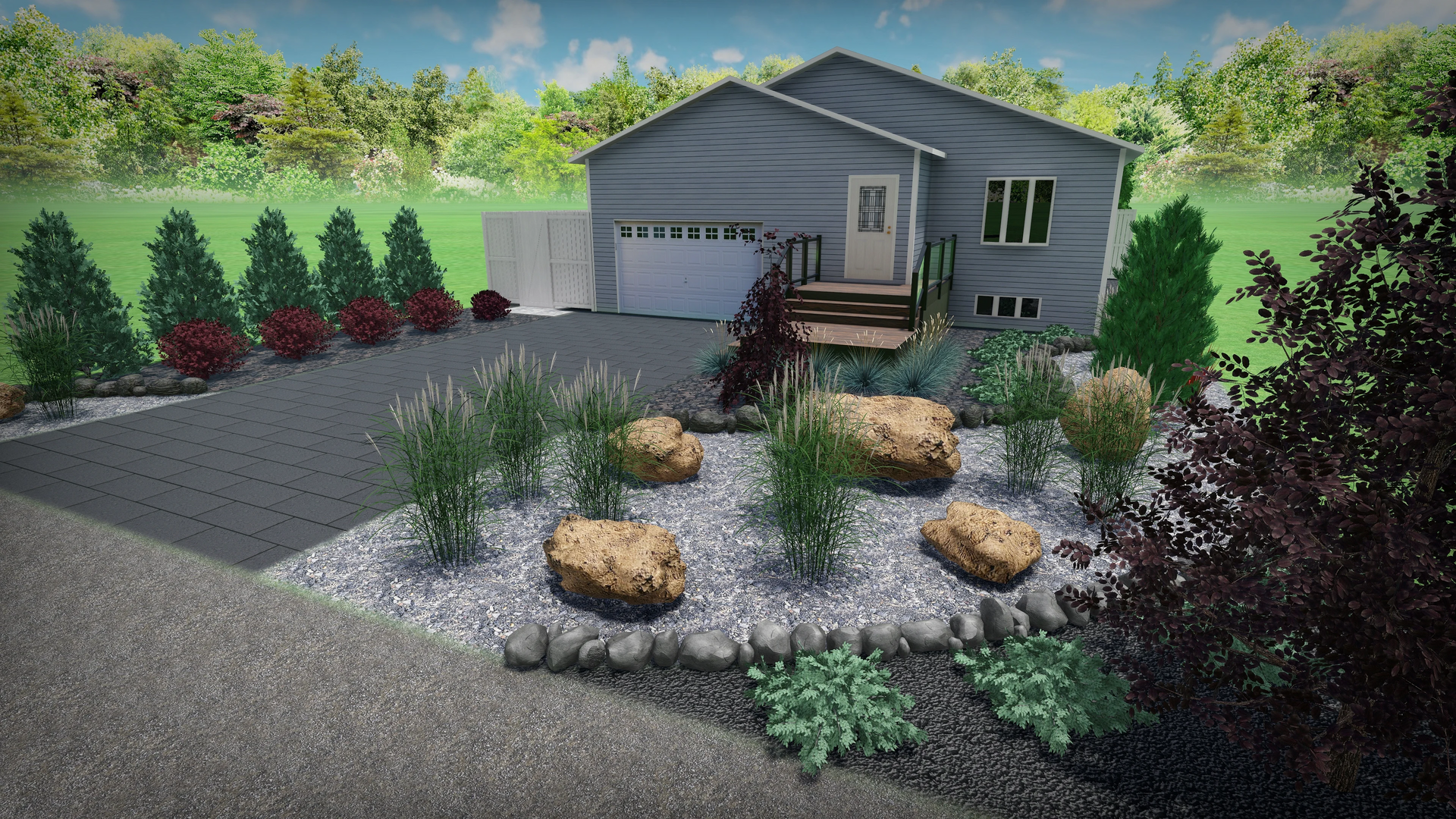 All landscape designs come with a 3D walk-through and 2D above-ground view. We can supply a large variety of landscape materials that give you the unique and modern look everyone is looking for.